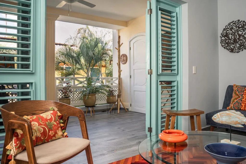 There is a lovely veranda that runs the full length of the condo. It is large enough for both an outdoor dining area and an outdoor living room.
